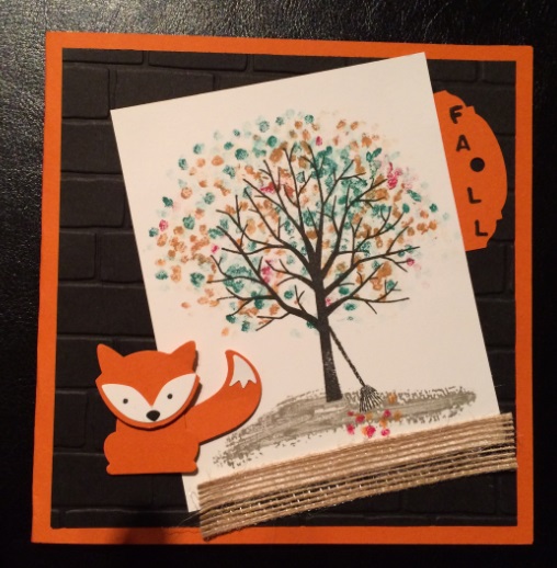 Ce mois-ci, la carte que j’ai réalisée a la particularité d’avoir été créée a 4 mains, avec ma fille Julie, 13 ans. Nous avons mixé 2 sets de tampons que nous apprécions beaucoup, Foxy Friends pour Julie et Arbre protecteur pour moi. Et voilà, je vous laisse découvrir notre carte.