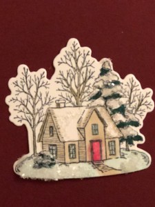 Ensuite, pour faire la neige, j’ai utilisé crystal effects étincelant et brillant stampin’glitter gelé.