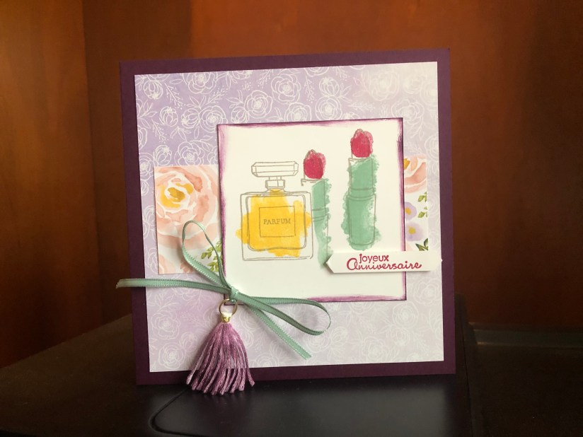 J’ai utilisé la collection très féminine, « Dans la garde robe », qui se trouve en page 54 du mini catalogue Stampin up janvier/juin 2020.