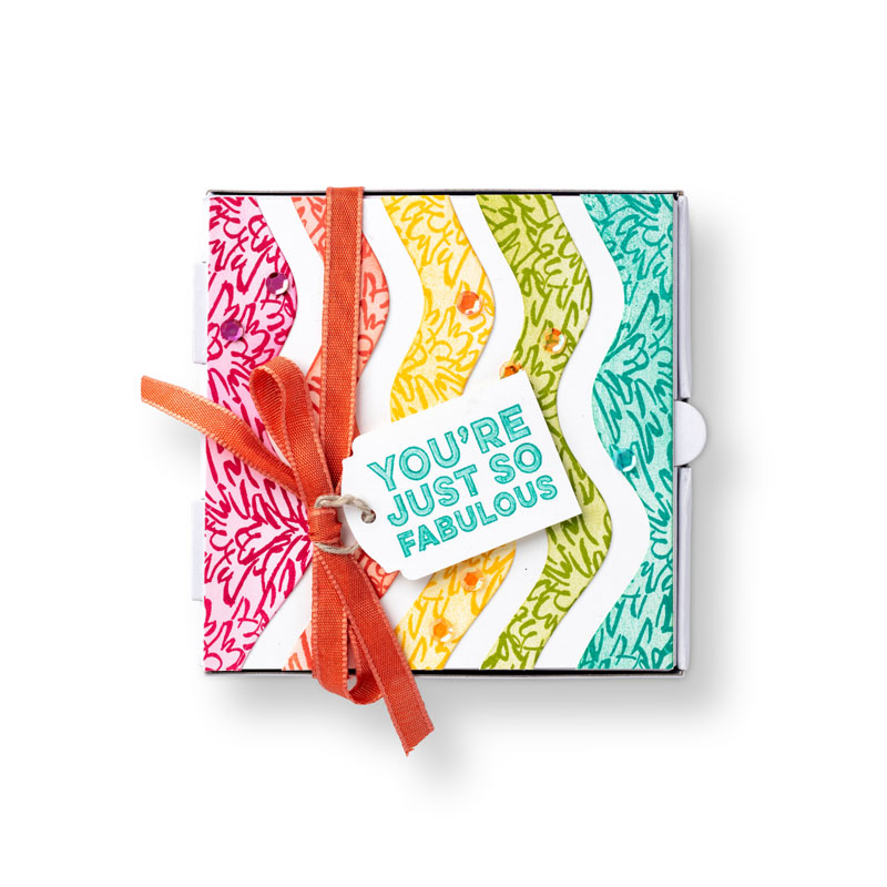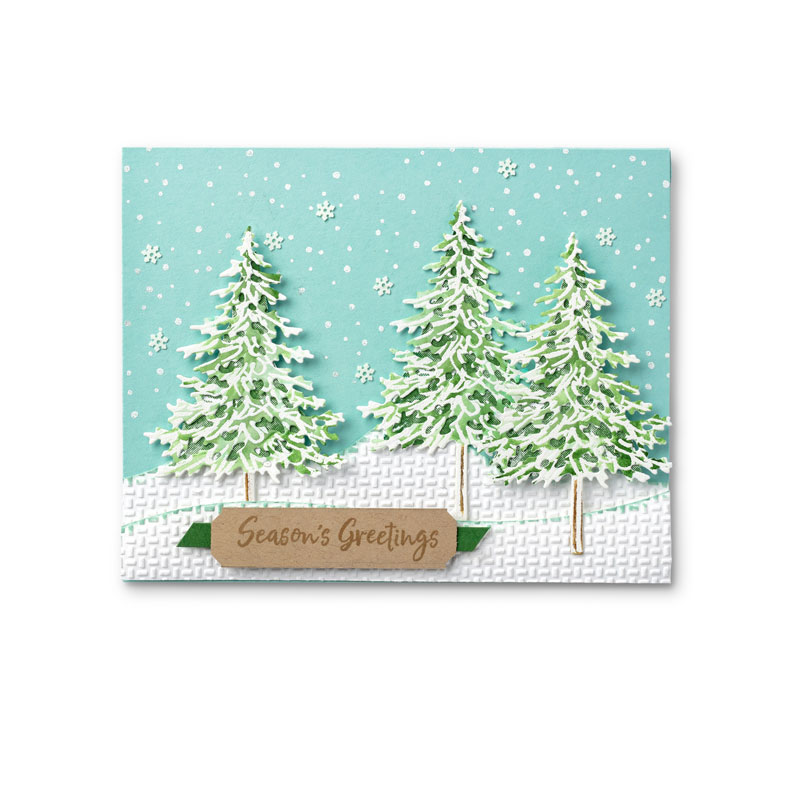 J’ai l’impression qu’il vous plait ce lot. Il est magnifique et présente un set de tampons inspiré de la nature avec des poinçons coordonnés. Aussi, avez-vous remarqué que le set de tampons propose des images en deux étapes ? Il vous suffit de tamponner l’image de silhouette dans la couleur d’encre la plus claire, puis les images détaillées dans des couleurs plus sombres. Cela vous permet d’obtenir facilement un aspect d’aquarelle qui laisse penser que vous l’avez peint à la main ! Et avec plusieurs images de sapins, vous pouvez facilement créer un petit bois hivernal en superposant les sapins tamponnés et découpés. (Créez un effet 3D en utilisant des Stampin’ Dimensionals.)