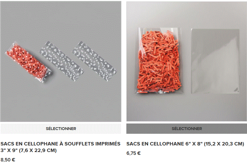 Voici des exemples de sacs en cellophane disponibles actuellement :