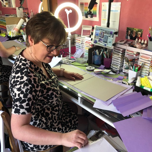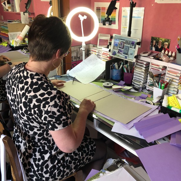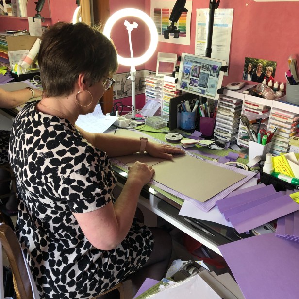 En plus de mon matériel de scrap, les autres indispensables sont : la lampe avec la lumière naturelle pour notamment lorsque je travaille en soirée que les couleurs des papiers ne soient pas dénaturés par une lumière jaune, le matériel pour faire les vidéos face à moi.