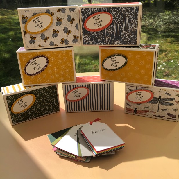 J’en ai réalisé plusieurs avec la collection de papier « Jardin sauvage » pour les offrir à mes clientes VIP. Elles les ont désormais toutes reçues aussi je peux vous les montrer.