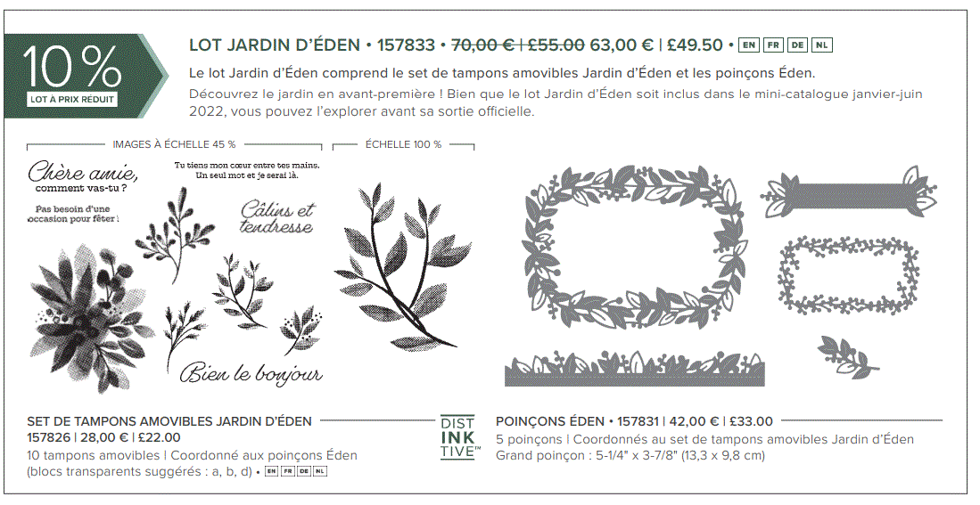 Si vous craquez pour les tampons et les poinçons, une réduction de 10 % sur le lot jardin d’Eden est offerte.