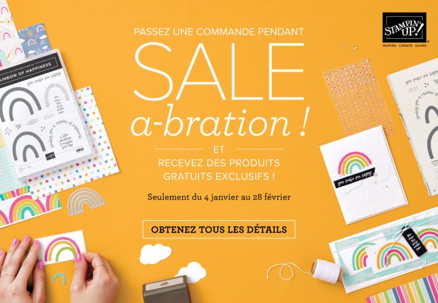 Aujourd’hui démarre la période de Sale-A-Bration (SAB) chez Stampin Up. Pour celles qui ne connaissent pas ce moment si attendu, voici quelques explications. La période de Sale-a-Bration est la période où Stampin Up vous fait plein de cadeaux à chaque commande dépassant 60 euros hors frais de port.