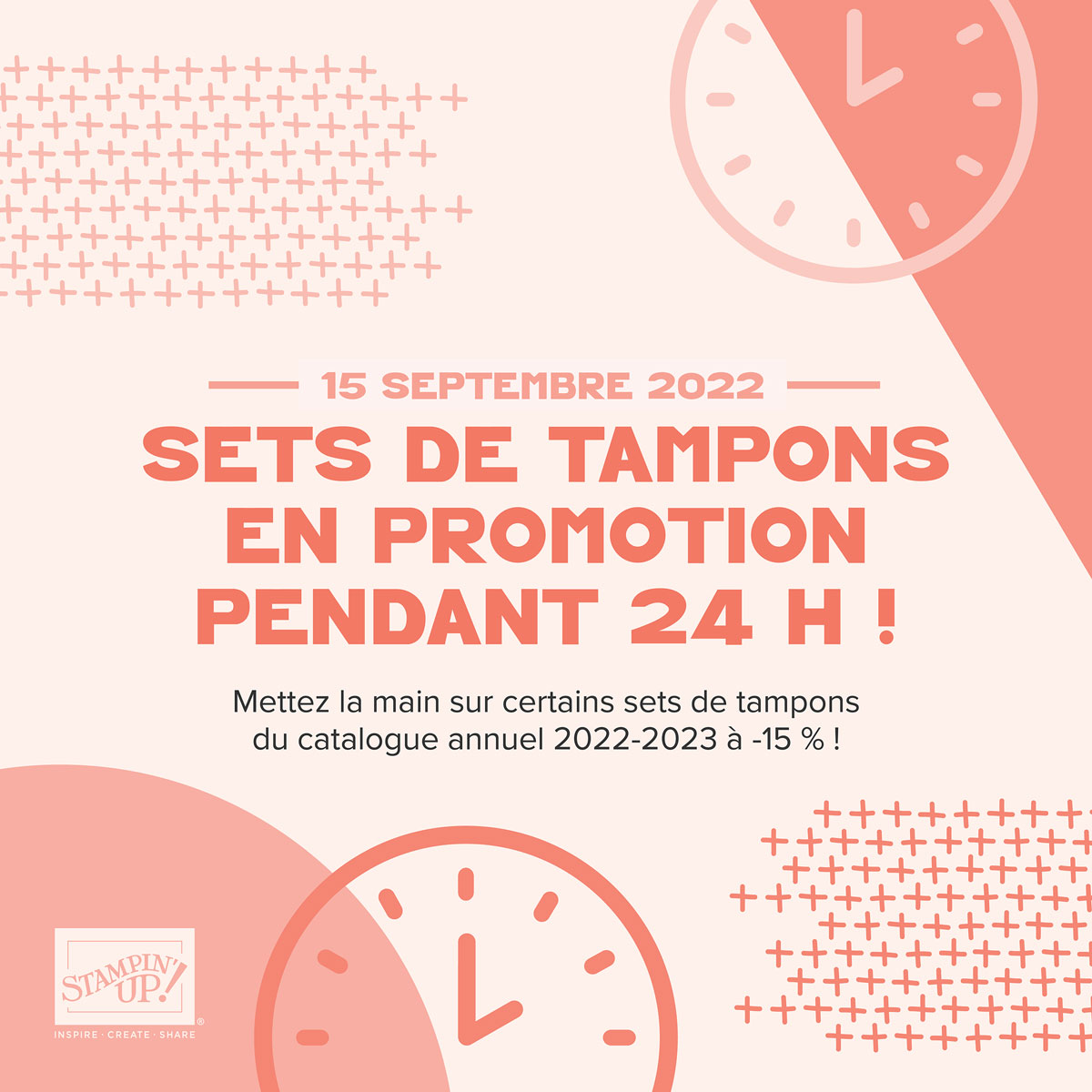 Voici une promotion valable uniquement le 15/09 : 15% appliqué sur la quasi totalité des sets de tampons du catalogue annuel 2022 2023.