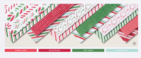 Je l’ai réalisé avec la collection de papier imprimé Stampin Up « Le plus savoureux des Noël » ;
