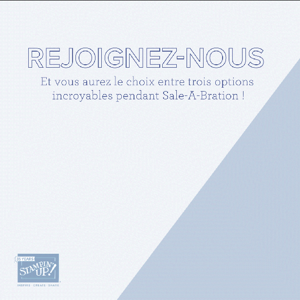 Sale-A-Bration est le moment idéal pour rejoindre Stampin’ Up! En devenant démonstratrice Stampin’ Up!, non seulement vous obtenez les Fournitures de lancement, avec leur excellent rapport qualité/prix, mais vous pourrez aussi choisir parmi les trois options incroyables qui suivent :
