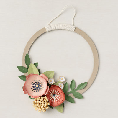 Aujourd’hui, je vous présente un nouveau kit,Couronne fleurie, pour fabriquer votre propre décoration d’intérieur. Roulez et formez les pièces prédécoupées et exposez votre couronne !