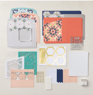 Aujourd’hui, je vous présente un nouveau kit, Kaléidoscope coloré, pour réaliser 9 cartes et leurs enveloppes assorties.