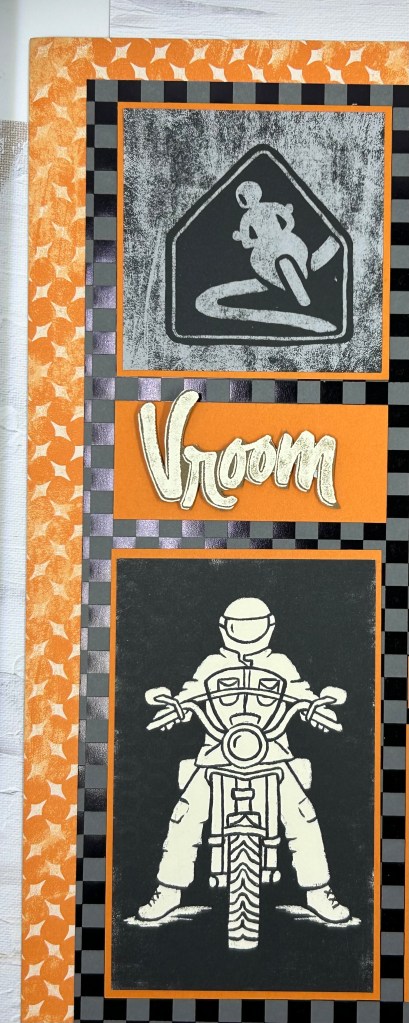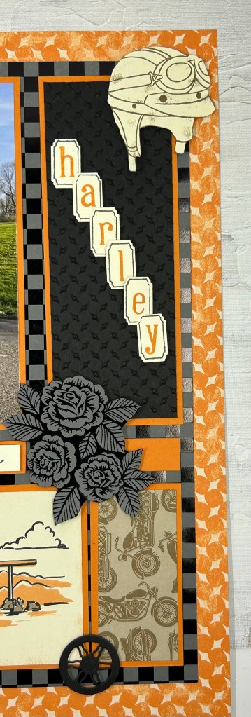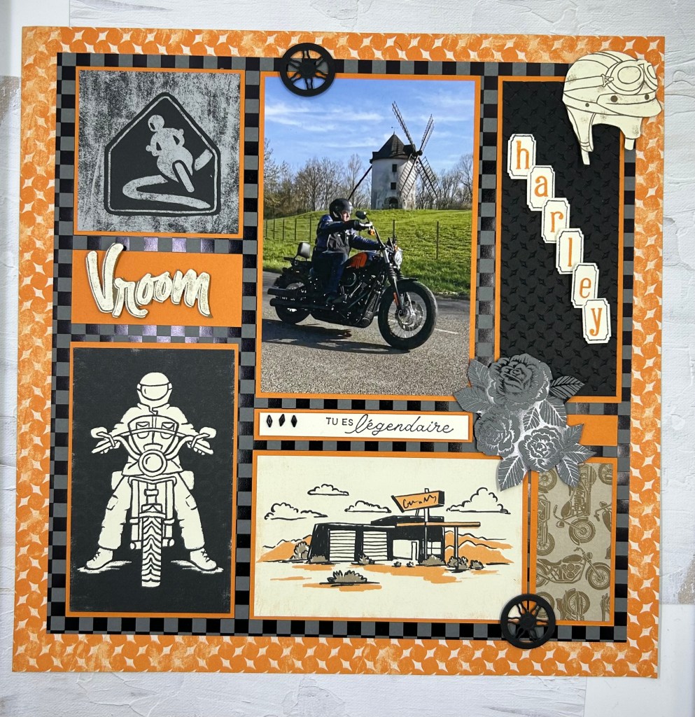 J’ai choisi de réaliser une page sur le thème de la moto; Cette photo de mon mari est prise par ma fille Julie..