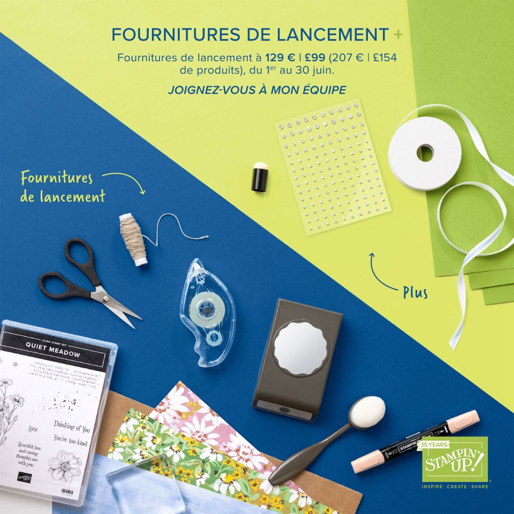 Hier, je vous annonçais la super promo sur les papiers imprimés (15%) et aujourd’hui je vous présente une super opportunité : pendant tout le mois de juin, profitez de la promotion sur le Kit de démarrage pour rejoindre la grande famille des démonstratrices Stampin’ Up!