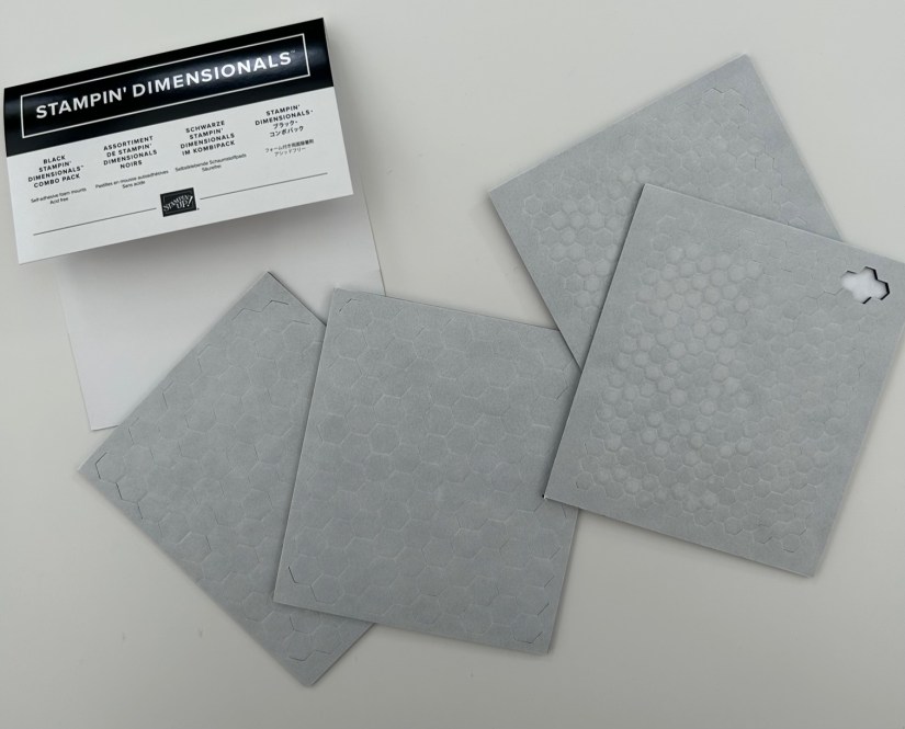 Cette semaine, je partage avec vous un produit très utile que la plupart d’entre vous ne remarque pas dans le catalogue annuel depuis des année « Assortiment de stampin’ dimensionals NOIRS« .