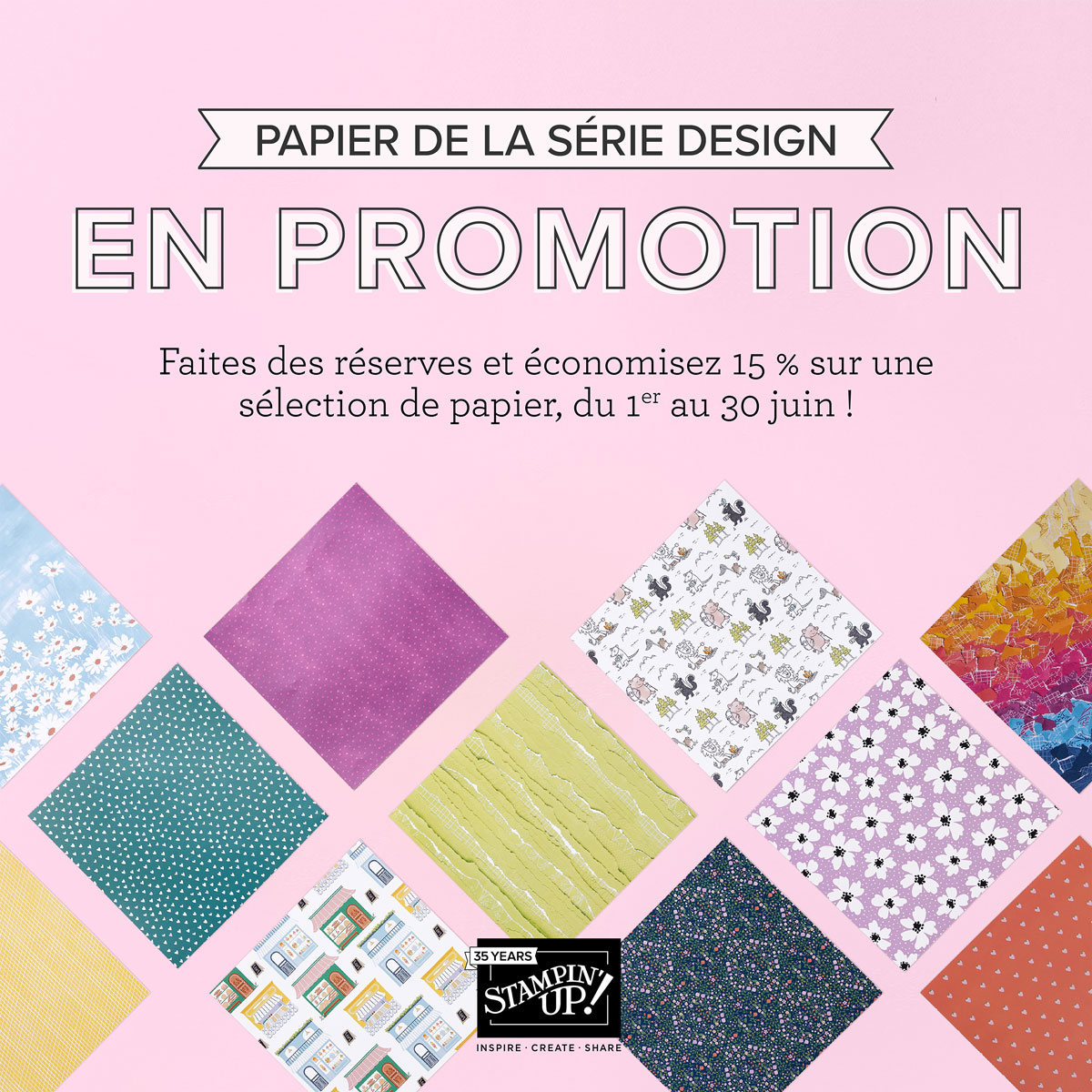 Durand tout le mois de juin, économisez 15 % sur une sélection de papier de série Design !