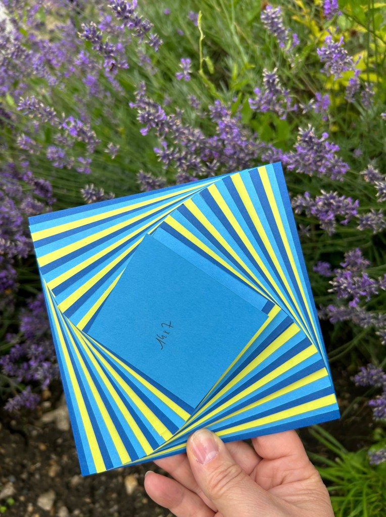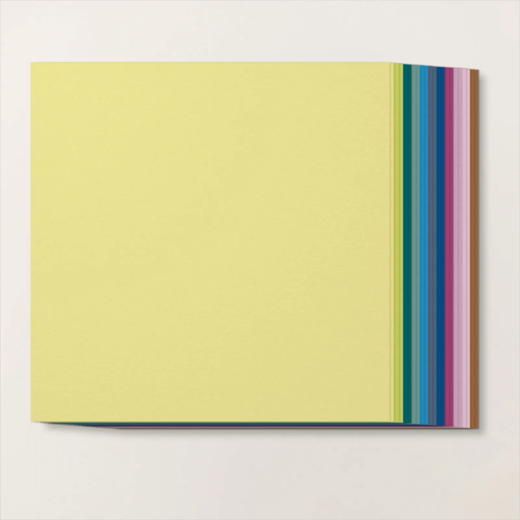 parmi le paquet de 22 feuilles au format 30,5 * 30,5 de PAPIER CARTONNÉ NOUVELLES COLLECTIONS DE COULEURS 2023 (réf. 161711) , 2 feuilles couleur « Bleuet des bois » , 2 feuilles couleur « Après-midi azur » et 2 feuilles couleur « Limonade à la limette » pour la structure.