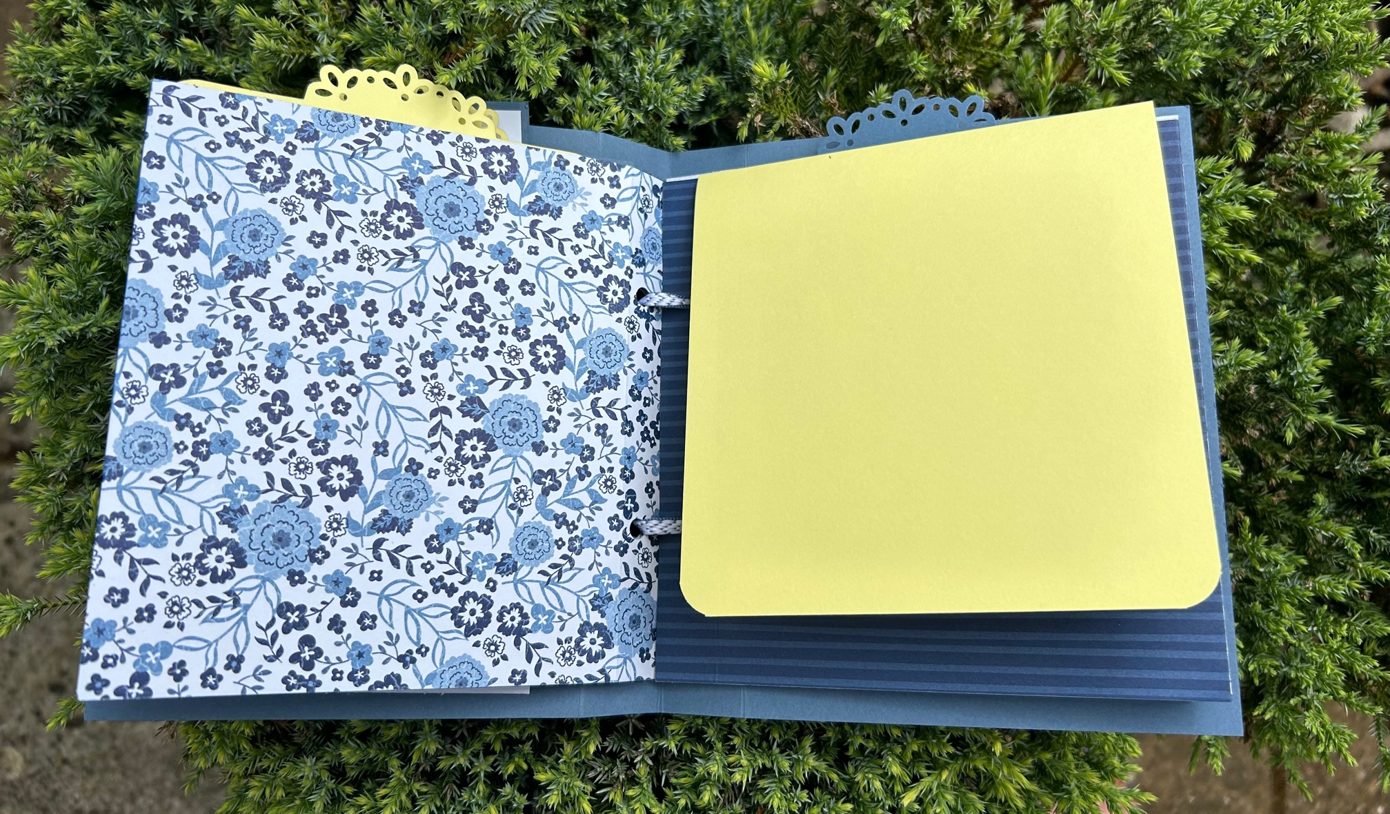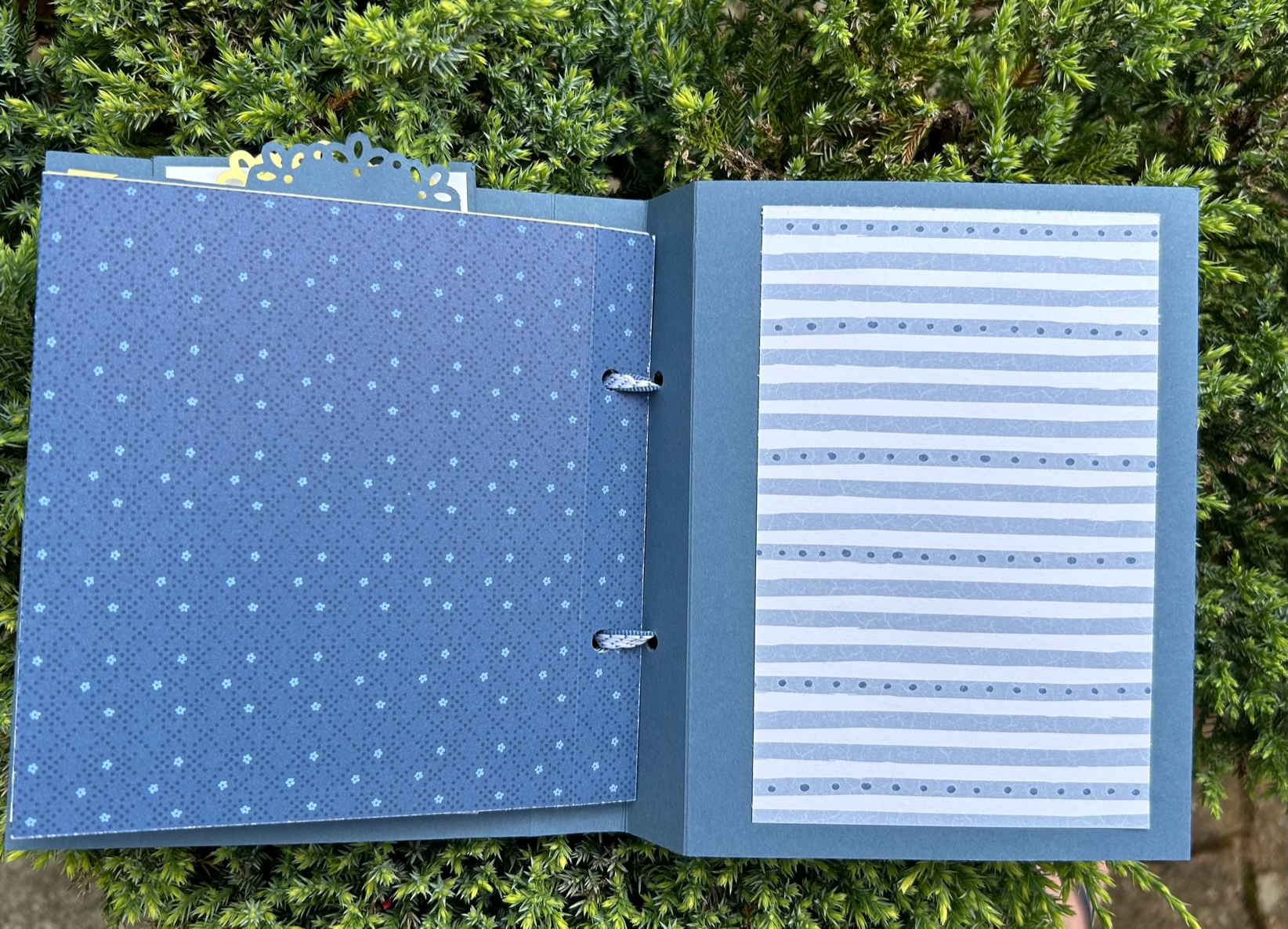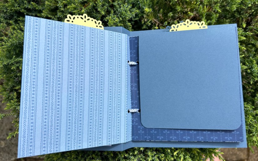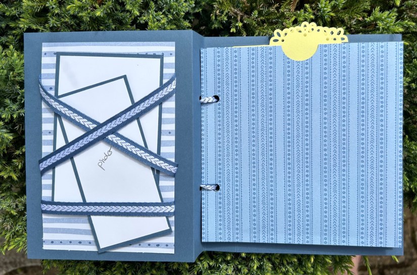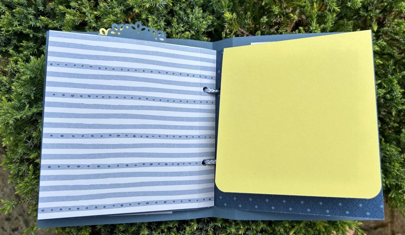 Pour la couverture intérieure, j’ai ajouté 3 morceaux de ruban qui servent à tenir des photos supplémentaires.