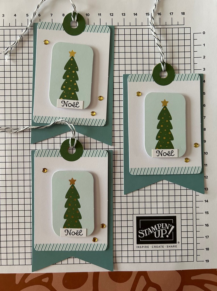 J’ai choisi de réaliser 15 étiquettes avec le magnifique kit étiquettes-cadeaux de Noël (réf. 162485)