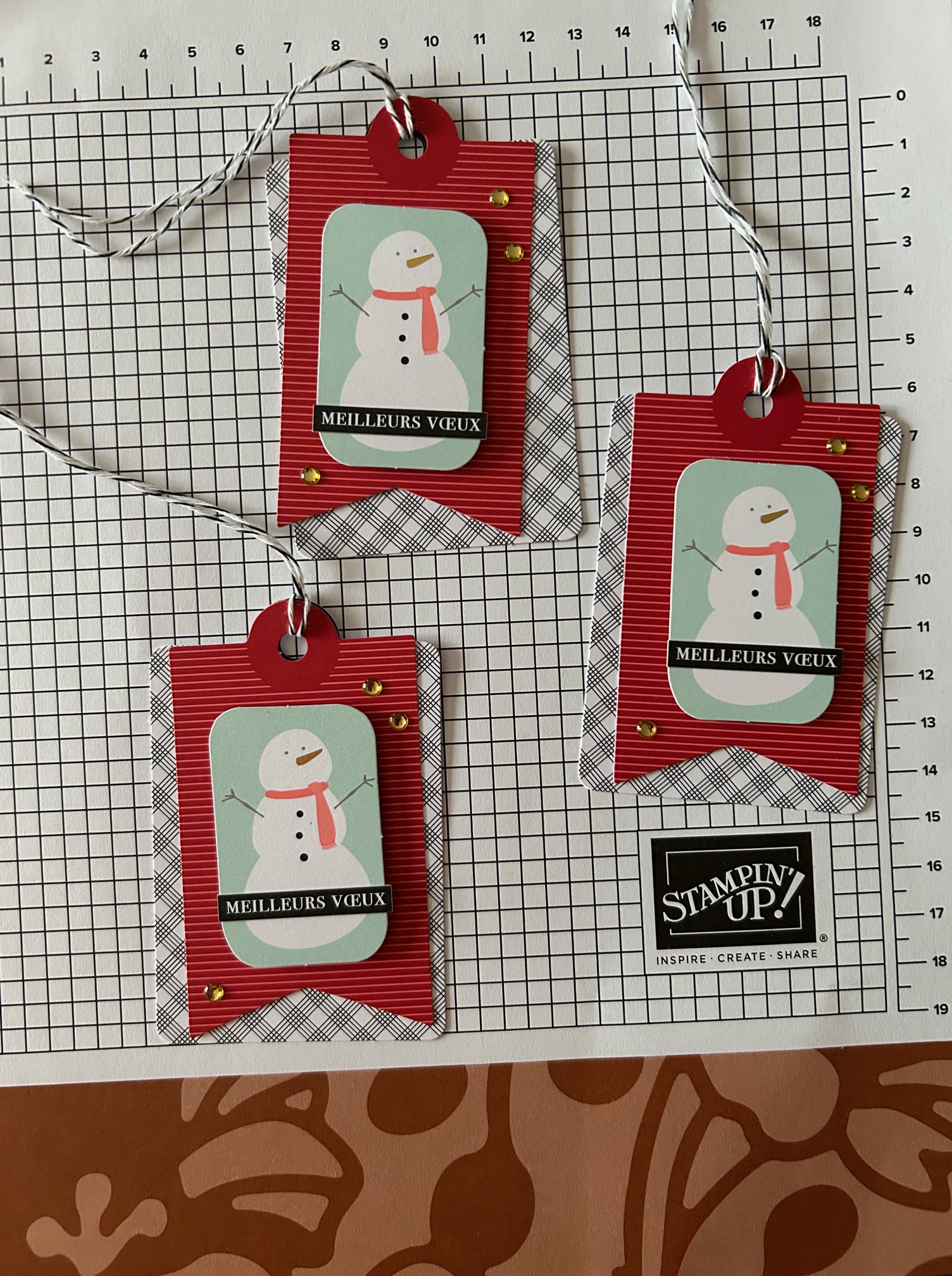 J’ai choisi de réaliser 15 étiquettes avec le magnifique kit étiquettes-cadeaux de Noël (réf. 162485)