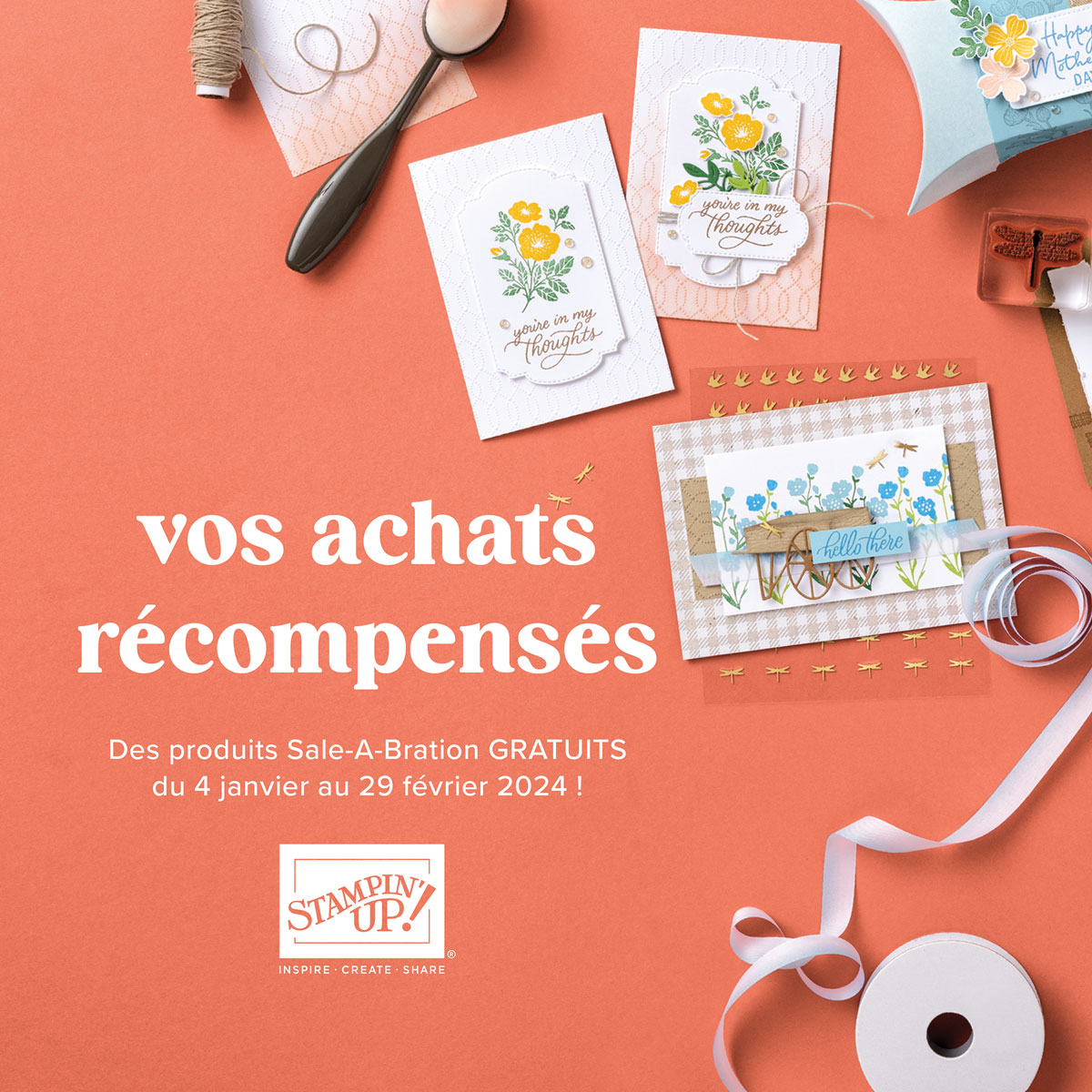 La Sale-a-Bration est la période où Stampin’U!p vous permet d’obtenir des produits gratuitement à chaque commande dépassant 60 euros hors frais de port.