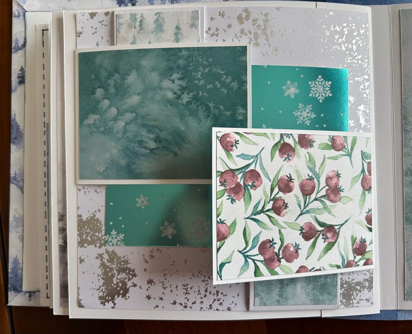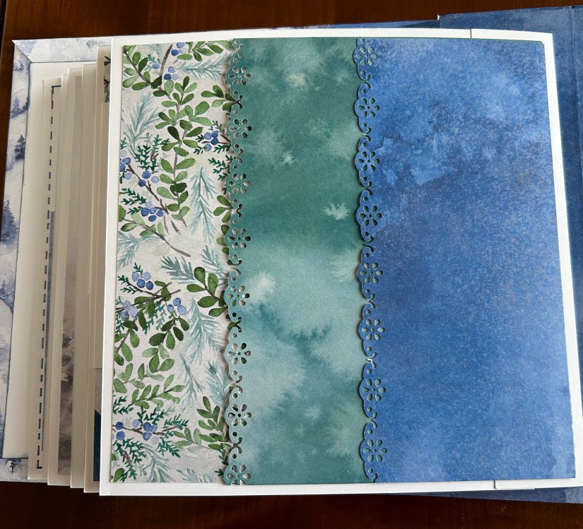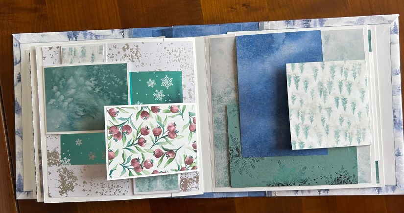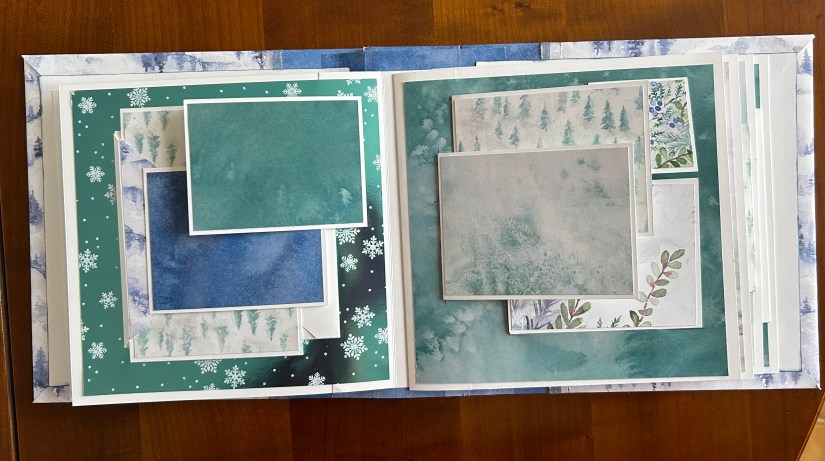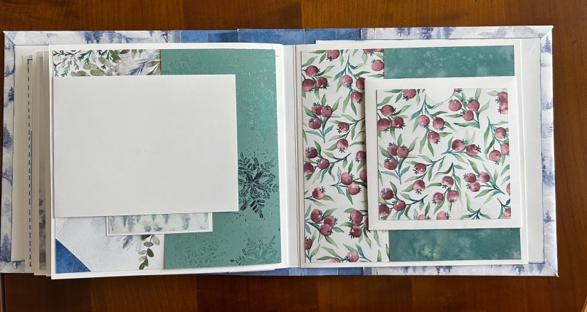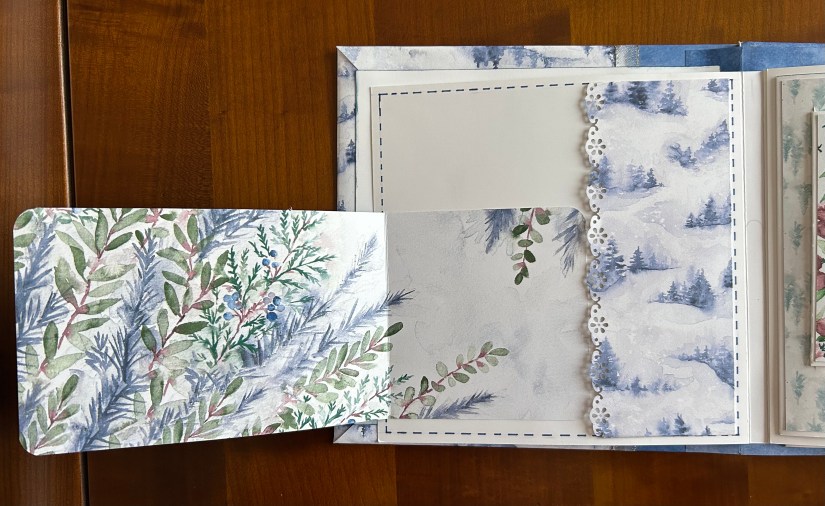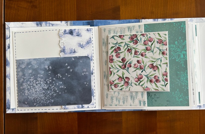Je vous présente le mini-album que nous avons réalisé du 1er au 24/12. J’envoyai une consigne par jour aux inscrites et elles ont réalisé l’album au fil des jours.