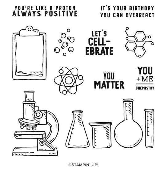 J’ai utilisé le lot de de tampons et poinçons « It’s a science« , Julie est étudiante en pharmacie et ce set de tampons est très approprié.
