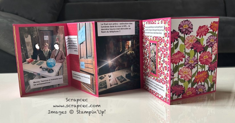 Début Avril, j’ai eu la chance de participer à une soirée créative au sein de l’association S.C.R.A.P. à Pontcarré. Ma marraine Stampin’Up!, Aude Barbara, nous a proposé de réaliser un mini-album printanier.
