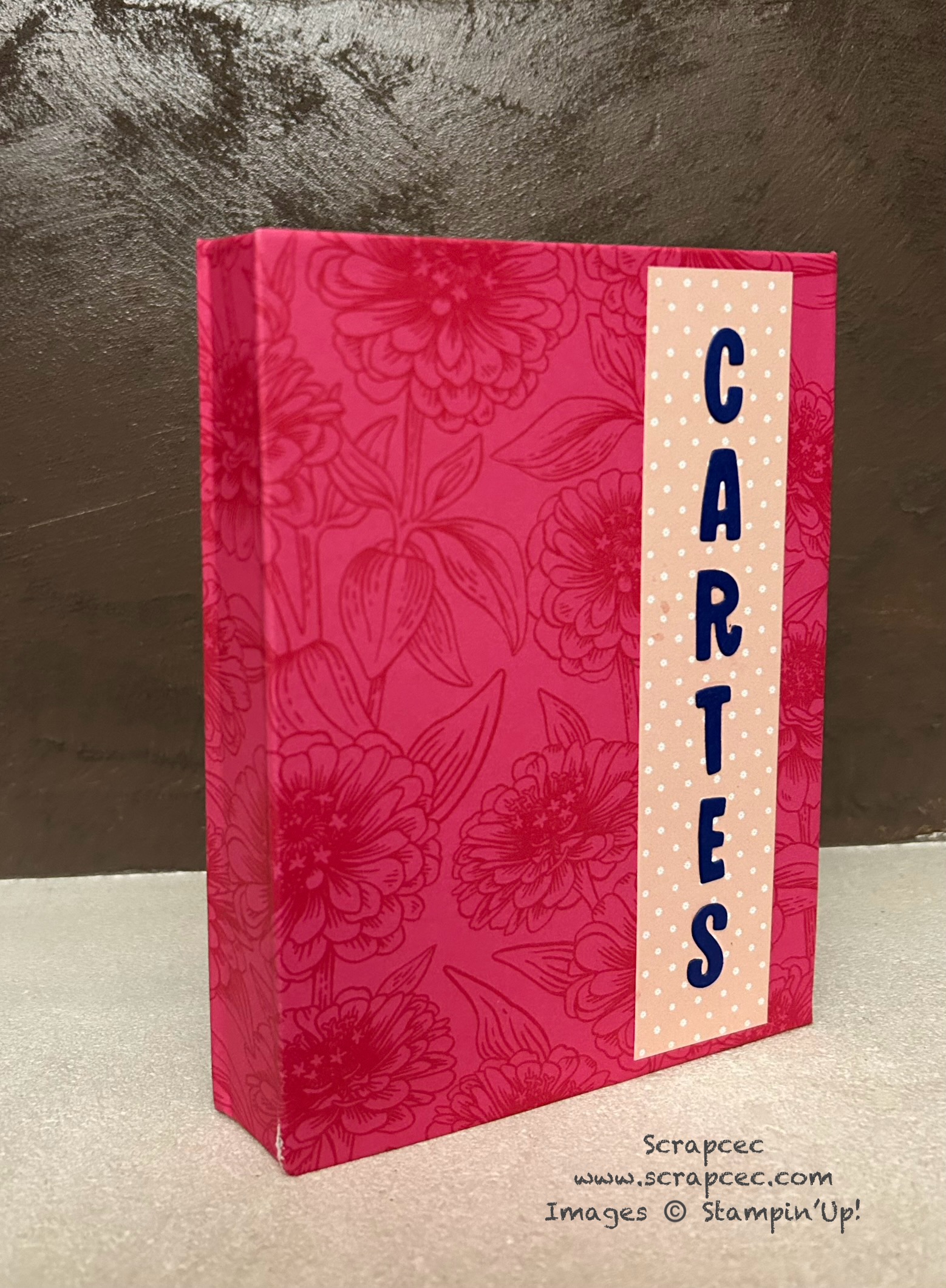 J’ai utilisé la collection de papier imprimé « Zinnias en fleurs » et des décos du nouveau catalogue annuel qui sort le 1er Mai.