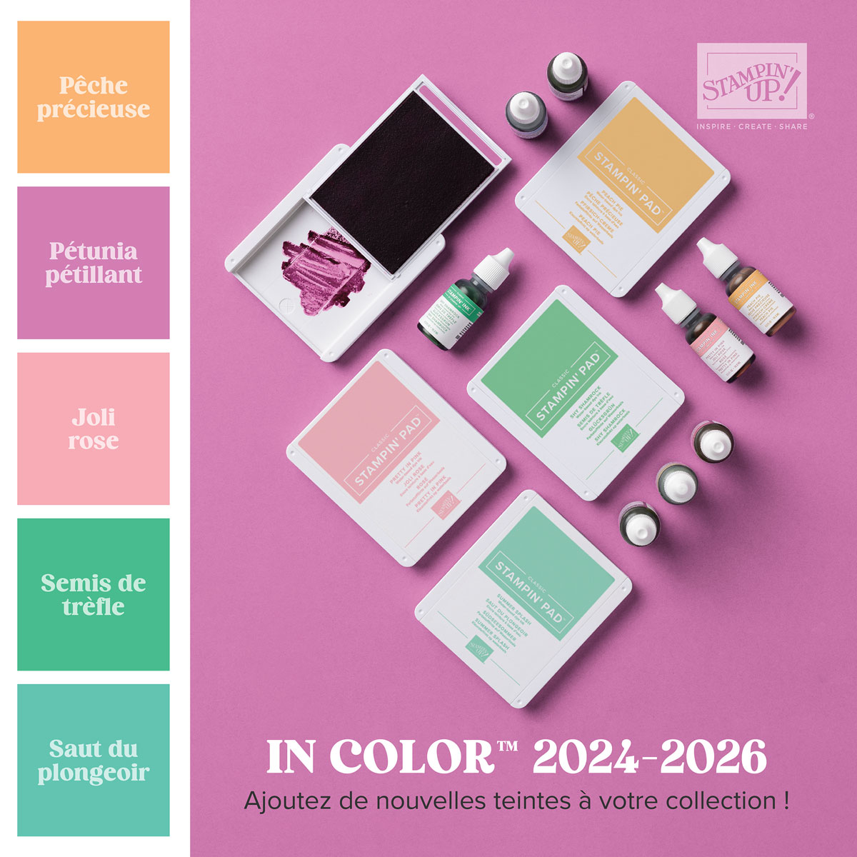 Pour les anniversaires de fin avril, j’ai choisi de réaliser des cartes d’anniversaire avec les nouvelles couleurs In Color 2024 2026 qui seront disponibles demain.