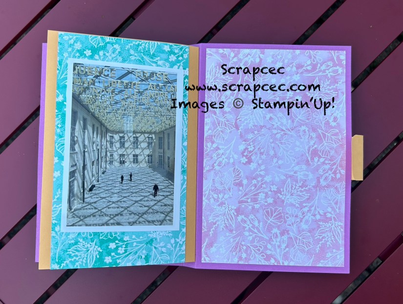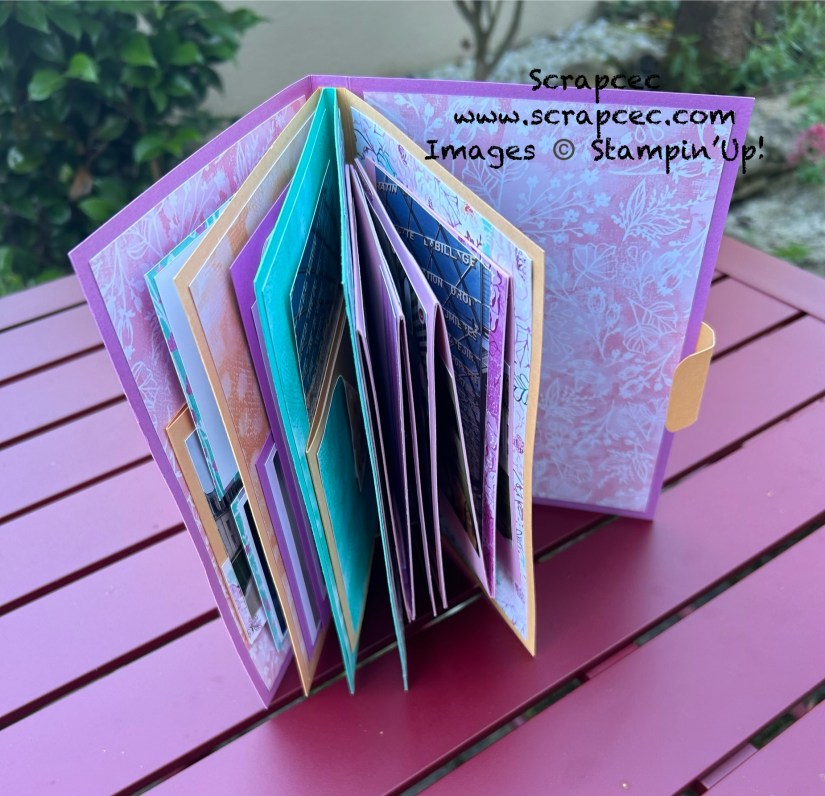 Cet album est réalisé avec la collection « Beauté sans bornes » et du papier uni des nouvelles couleurs 2024/2026 de Stampin’Up.