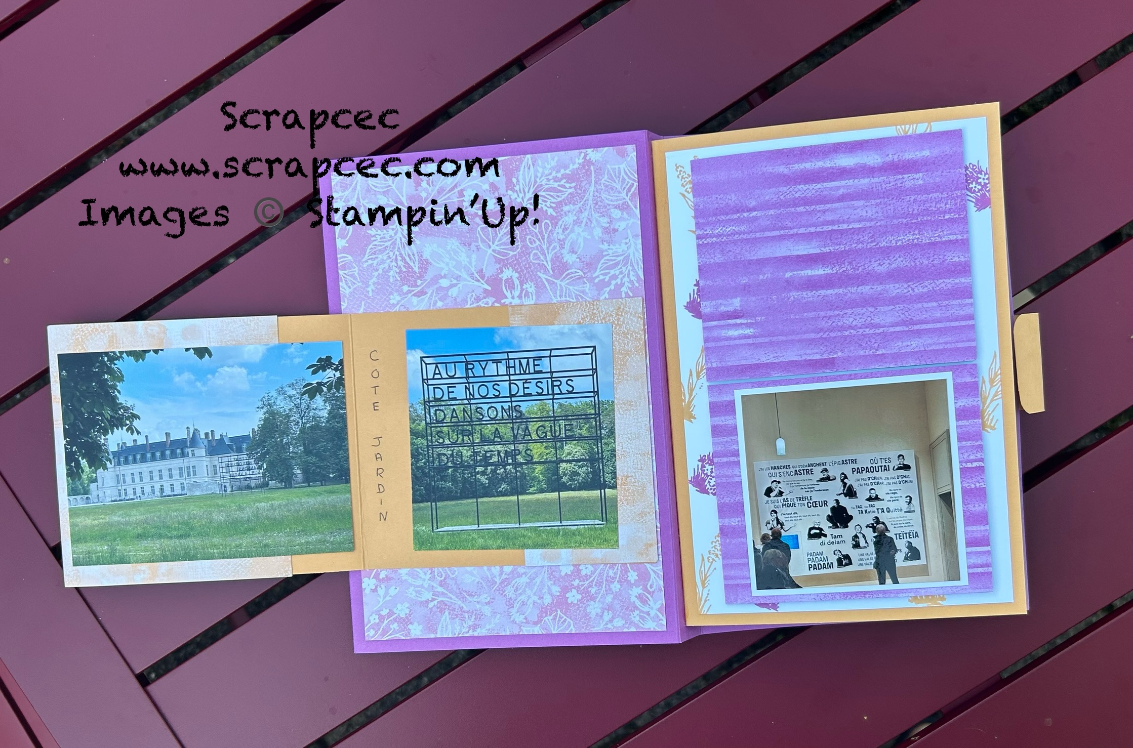 Cet album est réalisé avec la collection « Beauté sans bornes » et du papier uni des nouvelles couleurs 2024/2026 de Stampin’Up.