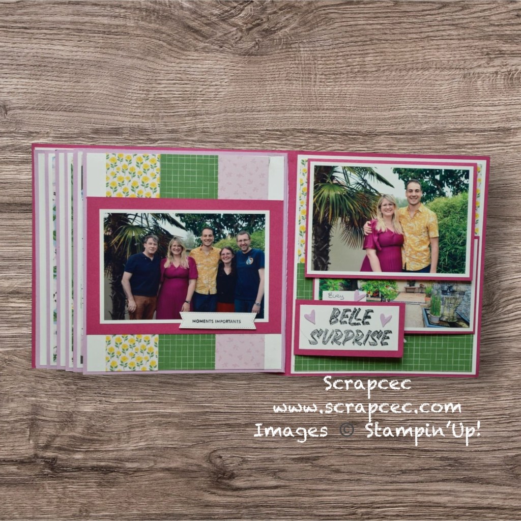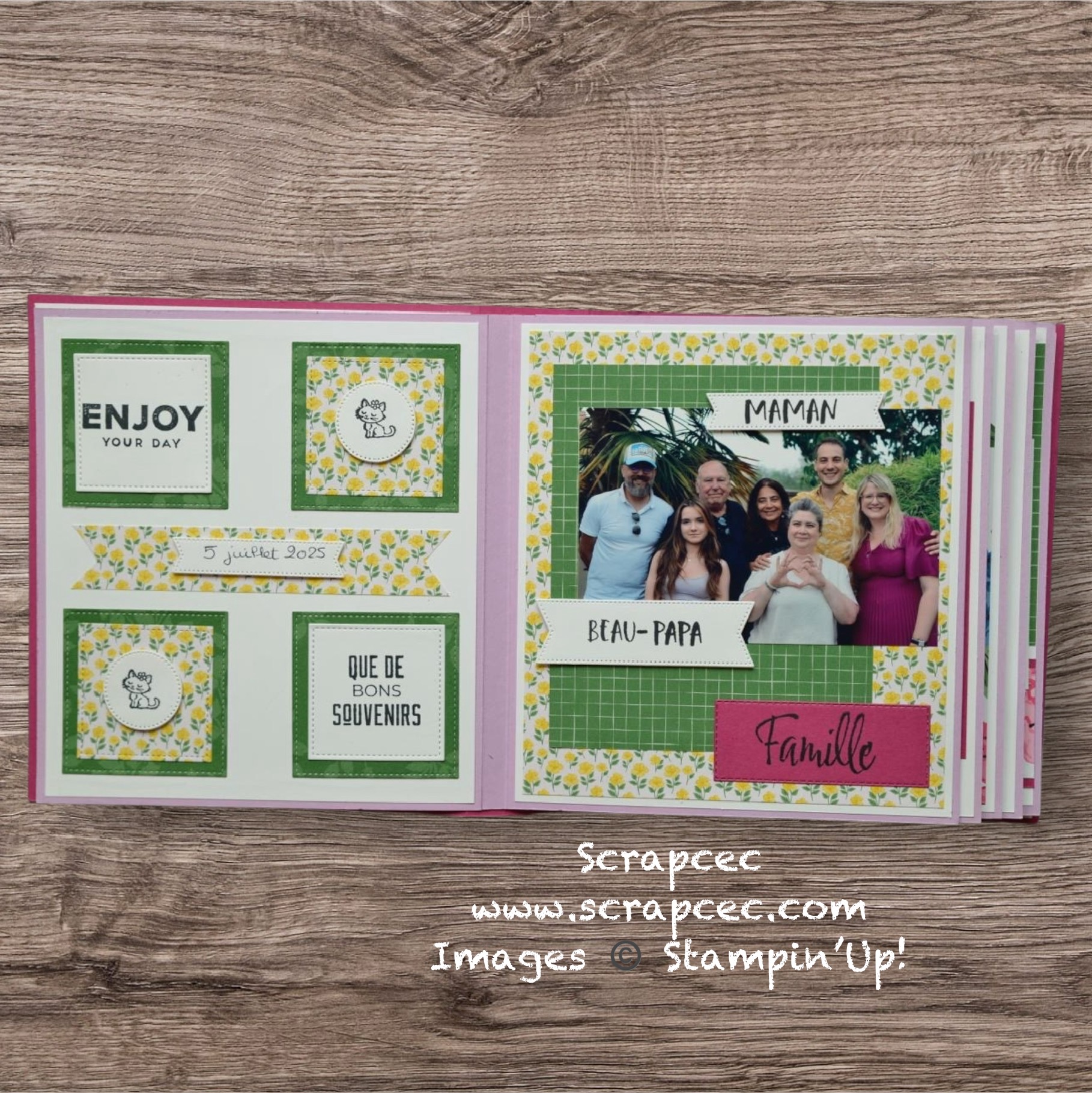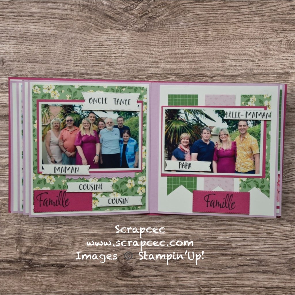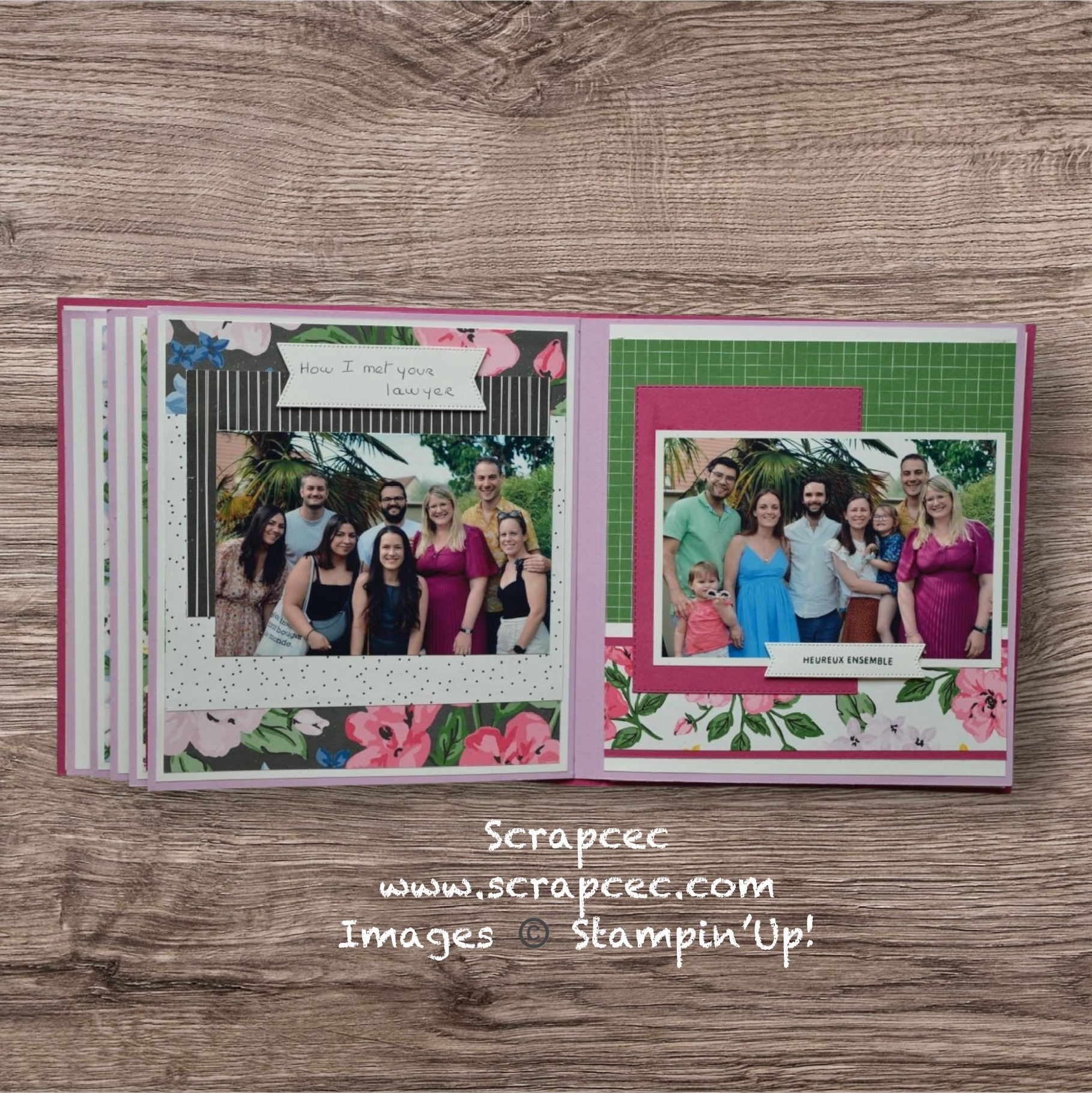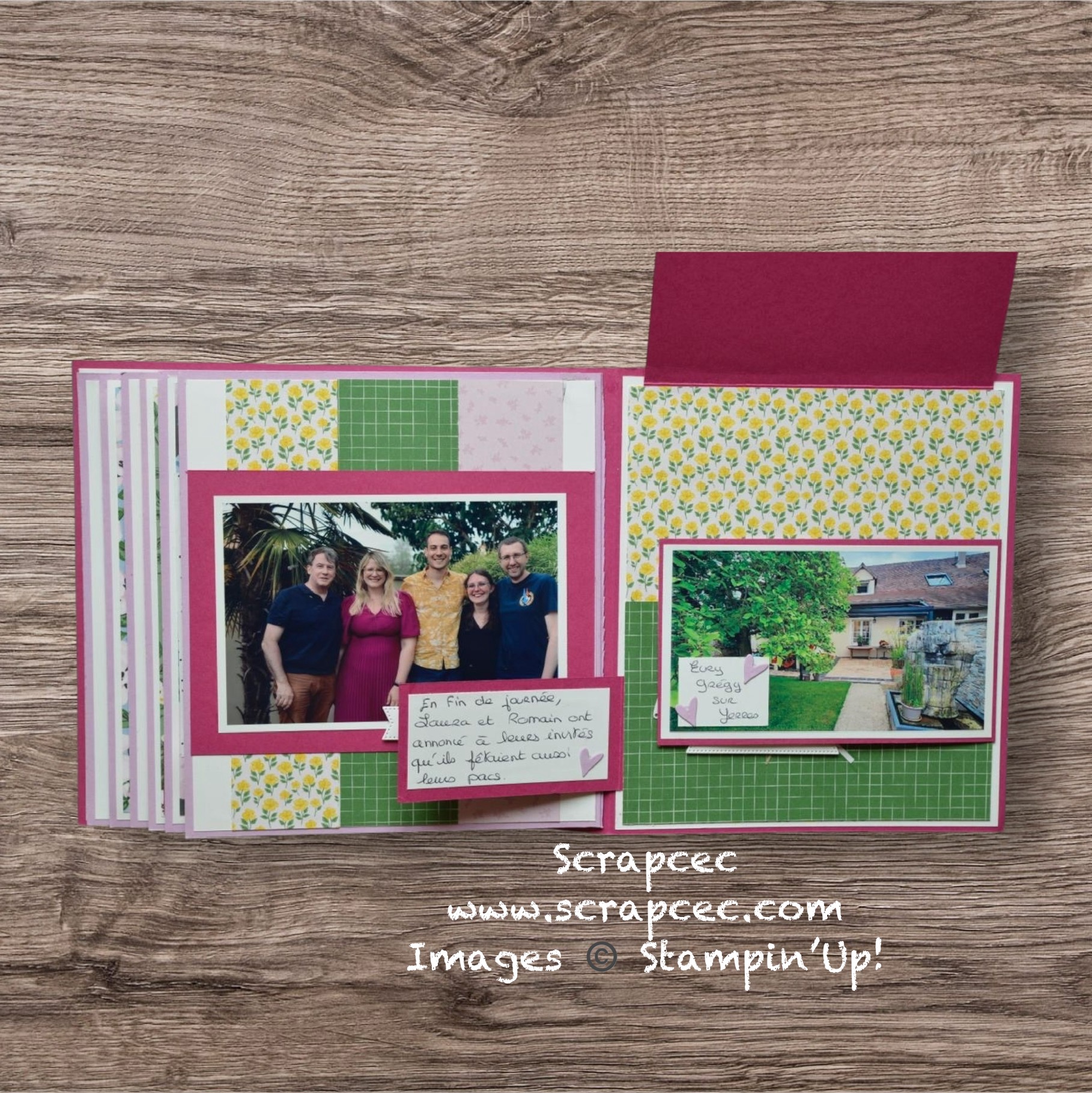 Pour immortaliser cette belle journée en famille et avec leurs invités respectifs, j’ai choisi de leur offrir un mini-album souvenir avec la collection de papier « Jardin charmant«