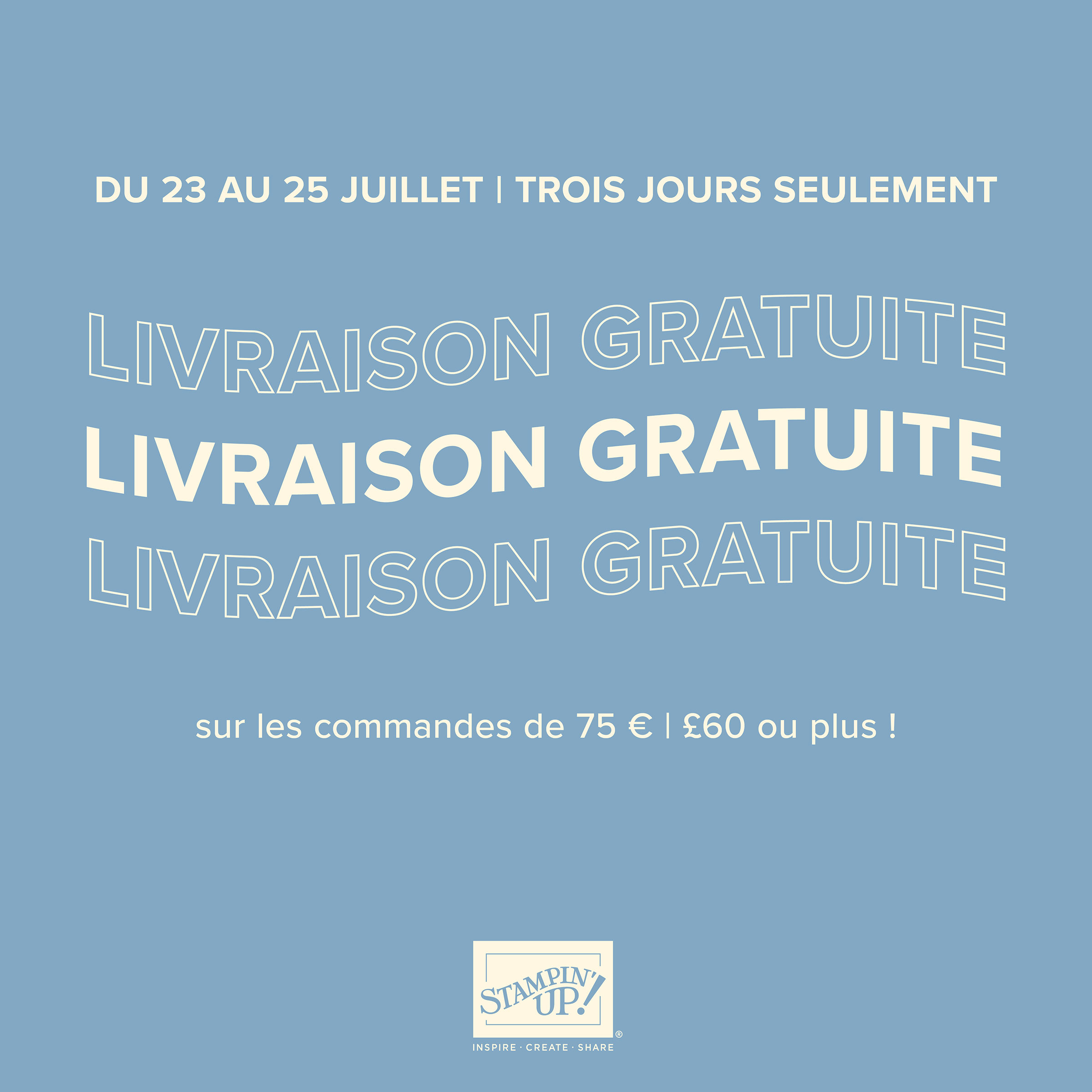 Du 23 au 25 juillet, les frais de port sont gratuits pour toute commande dont le montant est supérieure à 75 euros hors frais de port