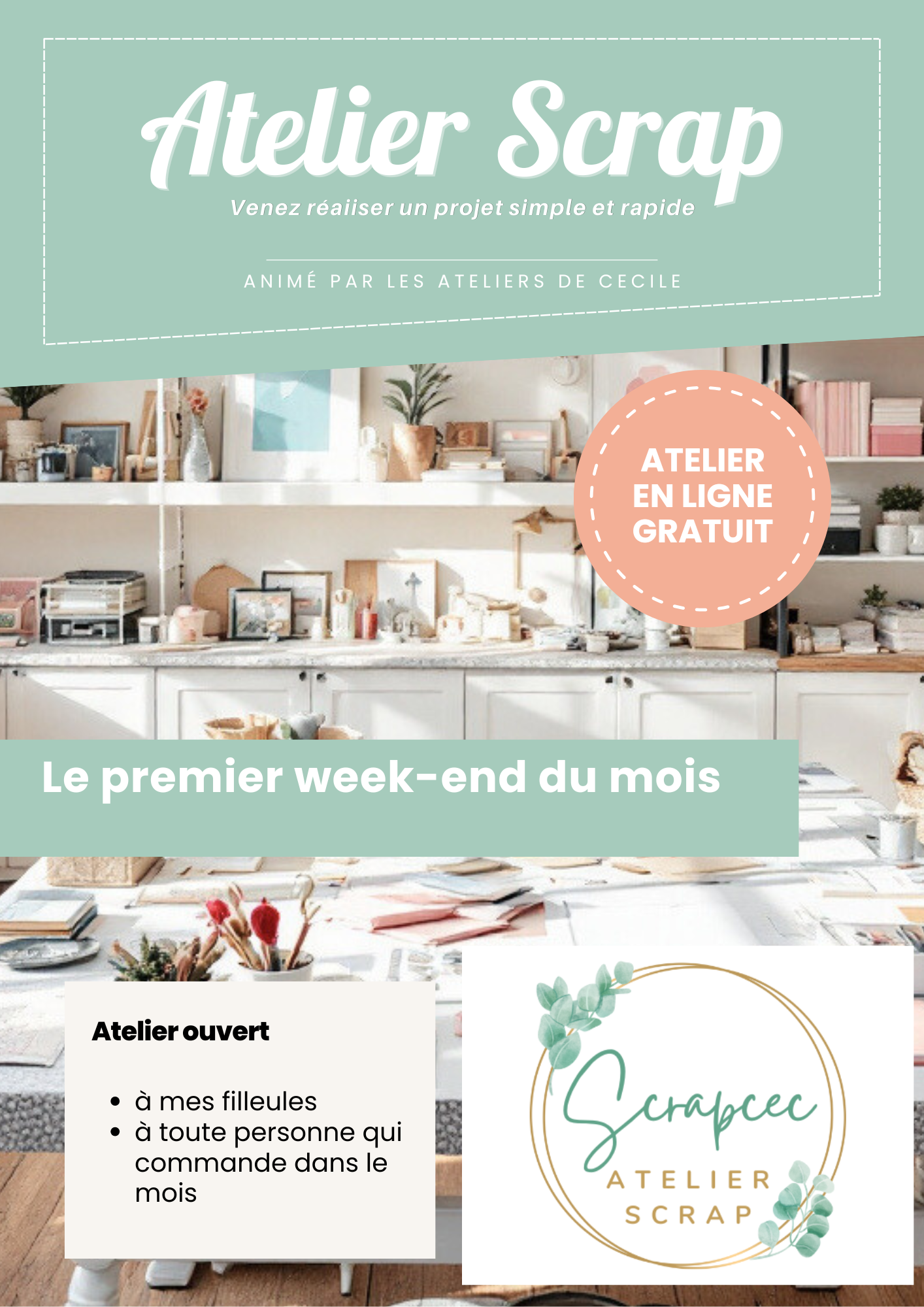 Chaque mois, je propose un atelier en ligne gratuit pour réaliser un projet de scrapbooking, de carterie ou de home déco.