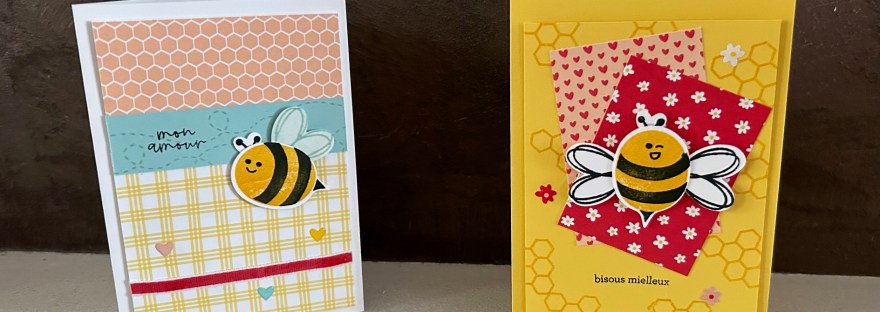 Bonjour, Voici deux nouvelles cartes très colorées réalisées avec la nouvelle collection "Petite abeille chérie" La collection "Petite abeille chérie" est disponible en page 9 du nouveau mini-catalogue. Bonne journée Cécile