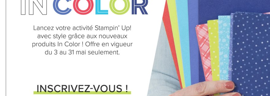 Du 3 au 31 mai, Stampin Up vous propose une offre très intéressante pour rejoindre la grande famille des démonstratrices Stampin Up C’est très simple : vous choisissez tous les produits de votre choix dans les catalogues pour un total de 175 euros et vous ne payez que 129 euros; En plus des produits que vous… Lire la suite Promotions sur les fournitures de lancement In Color