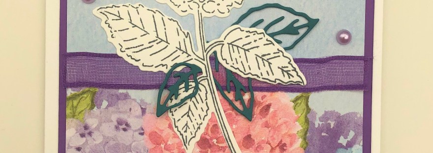 Bonjour, Le 29 avril, c'était l'anniversaire de ma Maman. Voici la petite carte que je lui envoyée. Elle adore les fleurs et notamment les hortensias. Voici les produits utilisés : Bon scrap Cécile