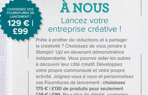 Bonjour, Voici quelques informations pour devenir démonstratrice Stampin Up Aucune nécessité de vendre à d’autres personnes, d’avoir un blog, une page facebook…Vous pouvez être démo pour vos seuls achats. La période idéale pour devenir démo est la SAB…donc en ce moment et jusqu’au 28/02.Voici un exemple des avantages si vous rejoignez mon équipe:Pour votre première… Lire la suite Rejoindre mon équipe et devenir démo