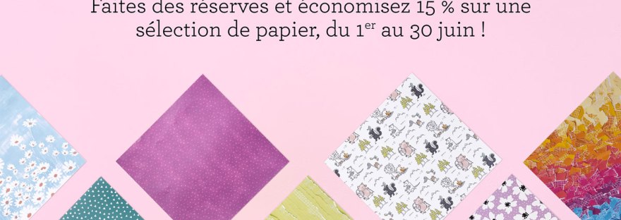 Bonjour, Durand tout le mois de juin, économisez 15 % sur une sélection de papier de série Design ! Voici la liste des papiers concernés : Et le flyer de la promotion à télécharger 2023_06_DSP_SALE_FLYER_FRTélécharger Pour toute commande en juin (inférieure à 200 euros) sur ma boutique en ligne https://cecilemollard.stampinup.net/, n'oubliez pas d'indiquer le code… Lire la suite Jusqu’au 30 juin promotion (15%) sur les papiers imprimés