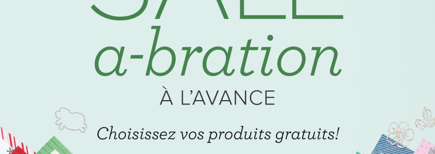 Bonjour, Le 30 septembre sera la dernière journée de Sale-A-Bration (SAB) chez Stampin Up . La période de Sale-a-Bration est le moment idéal pour devenir démonstratrice et la période où Stampin Up vous fait plein de cadeaux à chaque commande dépassant 60 euros hors frais de port. Vous passez commande en choisissant vos produits dans… Lire la suite Sale-A-Bration touche à sa fin