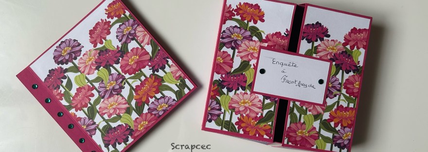 Bonjour à toutes et tous, Vous avez aimé ce mini-album. Merci pour vos messages. Il est toujours disponible en kit au tarif de 33 euros, hors frais d'expédition. Si vous souhaitez le réaliser, un tutoriel vidéo est disponible. Pour le réserver, contactez-moi par mail à scrapcec77@gmail.com et vous pouvez choisir un autre coloris uni que… Lire la suite Kit mini-album double cascade (vidéo de présentation)